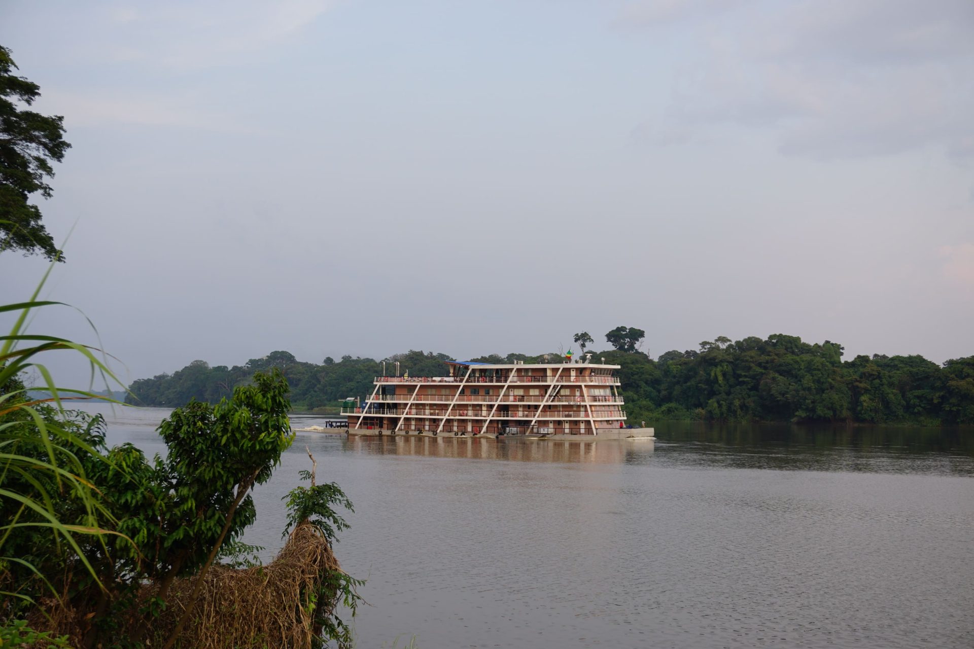 Navegação explorando o labirinto das ilhas fluviais, que pontuam esta vasta bacia hidrográfica. No estuário de N’Keni, teremos a oportunidade para admirar as diversas espécies de pássaros, que habitam nesta região rica em biodiversidade. Desde o deck de observação, podemos ver os barcos de transporte, que cruzam o rio levando mercadorias, pessoas e até gado. Estes barcos, essenciais para a economia local, desempenham um papel vital nas comunidades, conectando-as e facilitando o comércio nas margens do Congo. Pensão completa e noite a bordo.