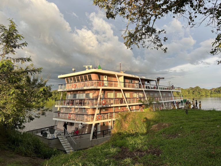 De manhã, chegamos a Mossaka, uma cidade estratégica para a indústria pesqueira do Congo. Aqui, o mercado local é um verdadeiro espetáculo de cores e vida, com peixes secos, salgados e frescos à venda, refletindo a importância do rio para a economia local. A seca e conservação de peixe, é uma prática ancestral transmitida de geração em geração, que tornou Mossaka famosa em toda a região. Continuação da navegação até à aldeia de Likendze, no rio Sangha, aprenderemos sobre as técnicas de pesca tradicionais, que continuam a ser usadas até hoje. Pensão completa e noite a bordo.