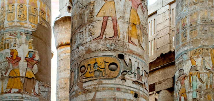 Visita aos templos de Luxor. Começamos pelo sumptuoso Templo de Karnak, um extraordinário complexo de santuários dedicados a Amon Ra (deus Sol), destacando-se entre as suas salas a famosa Sala Hipostila, com 134 colunas em pedra rosa. Conhecido durante a Antiguidade faraónica como Ipet-isut, era o mais importante centro de culto dedicado à tríade de Amun, Mut e Khonsu. Visita ainda ao Templo de Luxor, situado na margem do rio Nilo, um monumento notável no coração da cidade moderna. Transfer ao cais para embarque assistido pelo nosso guia, que acompanhará todo o cruzeiro. Almoço a bordo. Instalação nos respetivos camarotes. Jantar e alojamento a bordo.