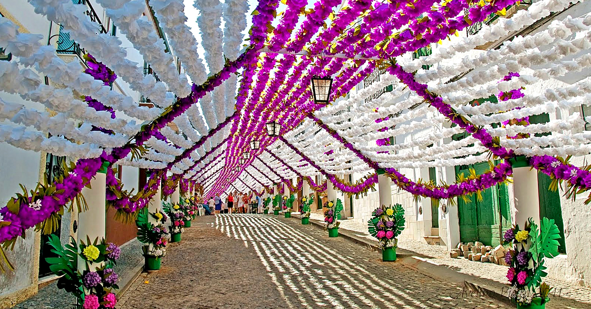 … Todos os milhares e milhares de flores, rosas, cravos, tulipas, glicínias e papoilas garridas foram preparadas com amor, carinho e grande espírito de vontade. Raro espetáculo que se nos oferece, além das maravilhosas ruas “enramadas”, são também as encantadoras e suaves melodias – as célebres “saias” – inspiradas em quadras soltas e acompanhadas de ritmo vivo e alegre com pandeiretas e castanholas, que se cantam e bailam (balham), em todas as ruas de Campo Maior…