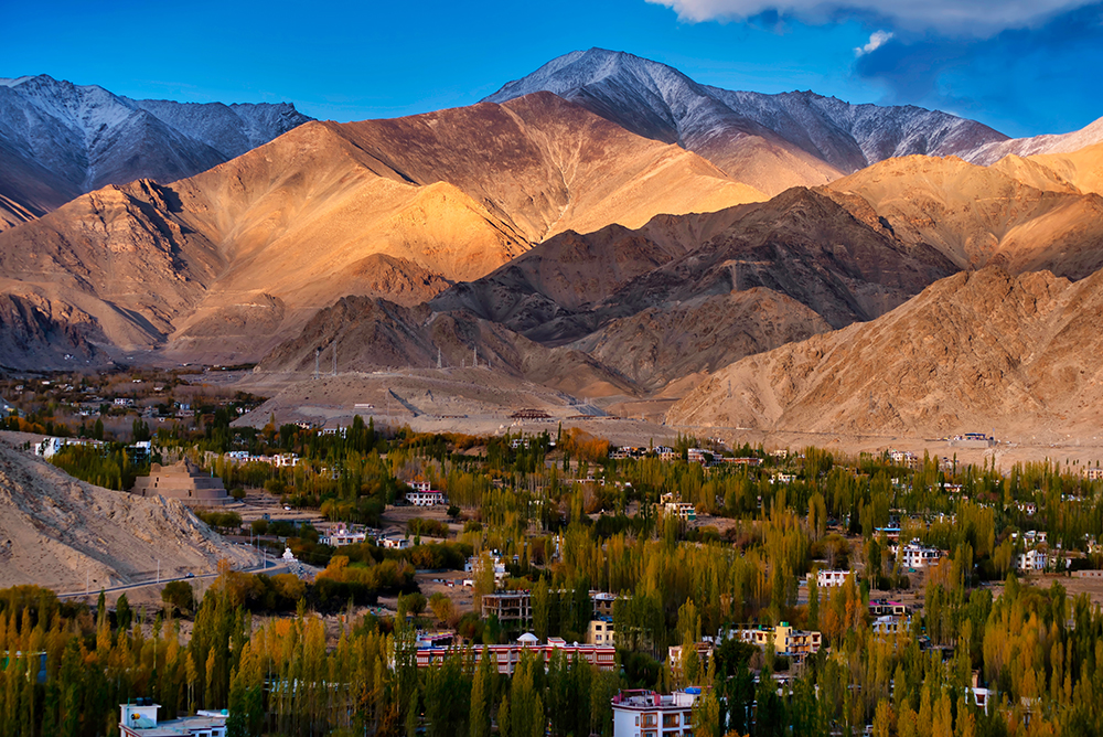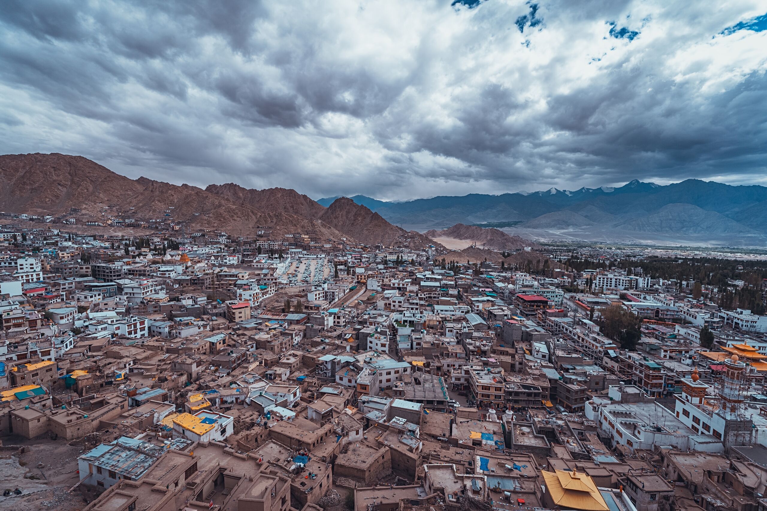A cidade de Leh e os Himalaias, vistos do Palácio Real
