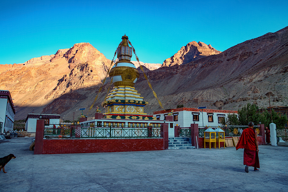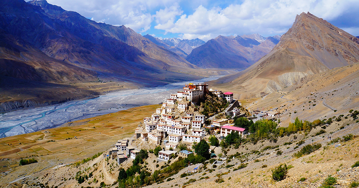 Efectuaremos hoje um segundo circuito na região; logo de manhã, visita ao maior edifício religioso. Datado do século XI, o mosteiro Key é conhecido pela sua deslumbrante arquitectura e valiosa colecção de livros e frescos. Funciona como centro de treino na vida religiosa para os 300 lamas que ali residem. Nas redondezas, o Parque Nacional do Vale de Pin – a sua altitude varia entre os 3500 e 6000 metros – abriga espécies raras como o íbex e o famoso (e infelizmente ameaçado) leopardo-das-neves. Cercada por pitorescas montanhas e áridas paisagens, Kibber (4270 m), orgulha-se do título: ‘povoação com estrada motorizada mais alta do mundo’. Também o mosteiro local lhe traz reputação internacional, assim como o seu parque natural, o Kibber Wildlife Santuary, habitat do lobo tibetano.