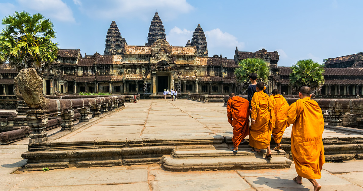 Visita a Angkor Wat. O complexo do templo ocupa 81 hectares, sendo comparável, em tamanho, ao Palácio Imperial em Pequim. Tem cinco torres que estão representadas na bandeira do Camboja e simbolizam os cinco picos de Meru. Continuação das visitas à cidade real de Angkor Thom, onde se destaca o Templo Bayon, que possui 54 torres decoradas com mais de 200 rostos sorridentes de Avolokitesvara, e o Terraço dos Elefantes. Almoço. Continuação para Ta Prohm, um dos mais belos templos da região, com enormes raízes entrelaçadas nas pedras dos edifícios. Jantar com espetáculo de danças tradicionais do Camboja. Alojamento.